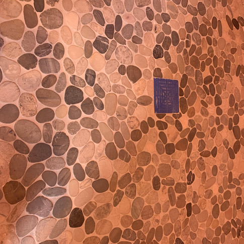 Custom Touch Builders sealed the shower with Redgaurd and installed a smooth pebble tile flooring in the shower.