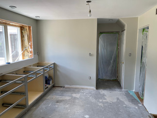 Remember how small the kitchen felt? Not anymore! We changed layout of the cabinets to open up the space. The sheet-rock is in and recessed lights have been added.